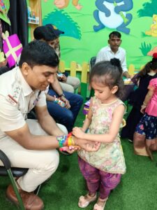 रक्षाबंधन के अवसर पर सेमरॉक्स स्माल वंडर्स स्कूल में थाना प्रभारी अनूप सिंह ठाकुर ने बच्चों से बंधवाई राखी