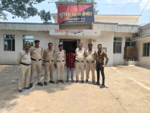 कैमोर कटनी पुलिस अधीक्षक अभिजीत कुमार रंजन के निर्देशन मे अतिरिक्त पुलिस अधीक्षक संतोष डहेरिया एवं वीरेन्द्र धार्वे अनुविभागीय अधिकारी विजयराघवगढ के मार्गदर्शन मे थाना कैमोर की पुलिस के द्वारा 22 मई को भ्रमण के दौरान यात्री प्रतीक्षालय पनिहाई तिराहा डमफर रोड के पास एक व्यक्ति बैठा हुआ मिला जो पुलिस को देखकर भागने लगा जिसे घेराबंदी कर पकड़ते हुए नाम पता पूछने पर अपना नाम अशोक पटेल पिता मोहनलाल पटेल 43 साल निवासी लालनगर दुर्गा मंदिर के पास थाना कैमोर जिला कटनी का होना बताया जिसकी तलाशी ली गई तो पास से प्लास्टिक की पन्नी में अवैध मादक पदार्थ गांजा 1 किलो 612 ग्राम रखे हुये मिला। अवैध मादक पदार्थ गांजा की जप्ती की जाकर थाना कैमोर मे एनडीपीएस एक्ट का मामला पंजीबद्ध कर आरोपी को गिरफ्तार कर न्यायालय पेश किया ।